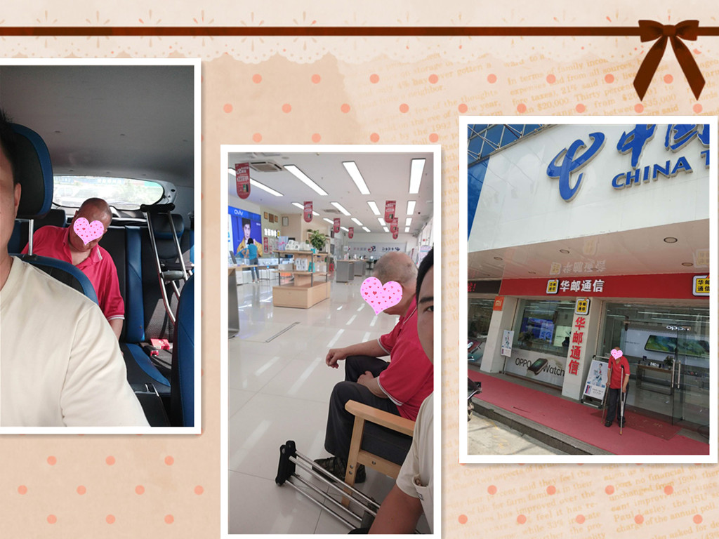 中心养老服务员陪同康乐村老人前往电信局办理业务